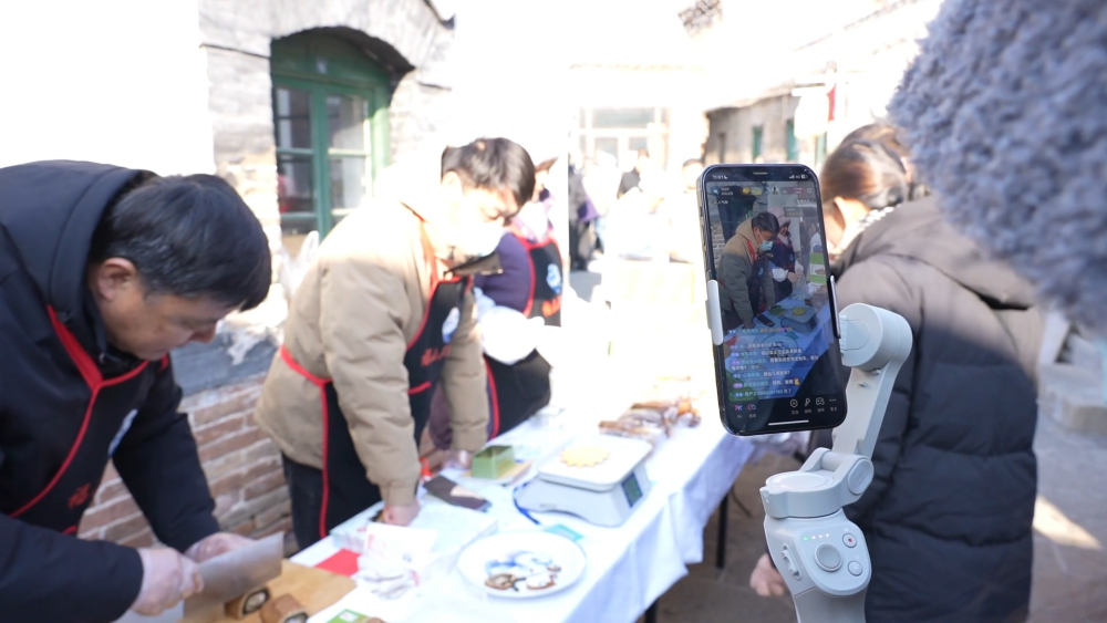 与以往大集不同的是,如今不少商家摊位前都摆上了直播设备,把最真实、热闹的赶集现场通过小小的屏幕展示给全国各地的观众。
