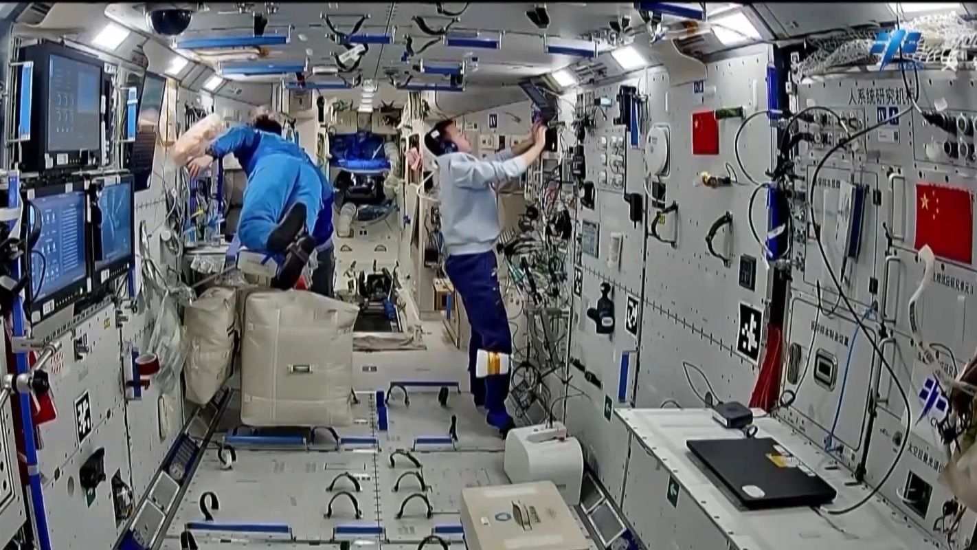 此外,乘组开展了空间材料科学、微重力燃烧科学等领域实验相关工作,完成无容器柜实验样品更换、轴心机构电极维护等多项操作。