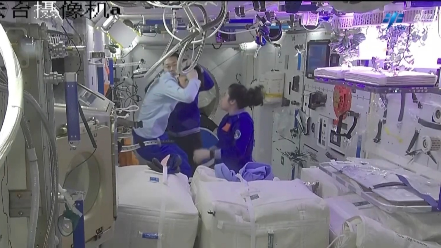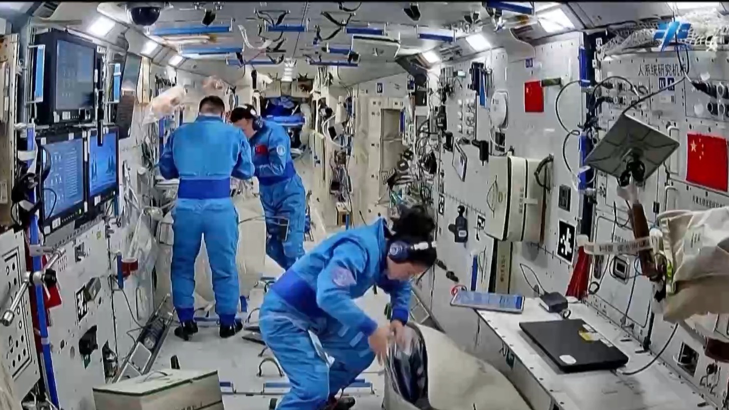 上周,乘组完成了舱内服装、工作用品、药品等各类物资清点工作,对娱乐用品、打印机等设备进行试用,并开展了再生生保系统设备检查维护及站务管理相关工作。