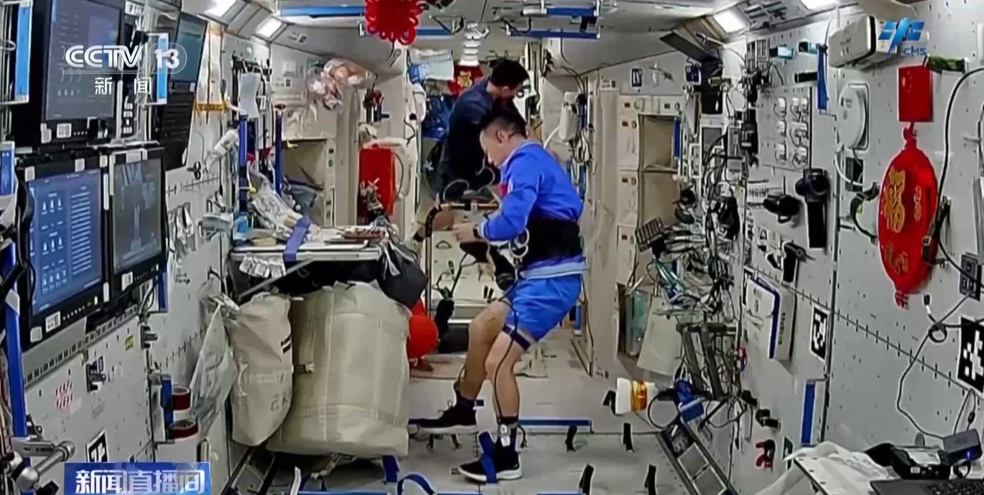 此外,三名航天员利用太空跑台、腕力球、握力器、骨丢失对抗仪等设施设备定期开展运动锻炼、进行失重防护,对抗长期在轨对人体骨骼、肌肉的影响。
