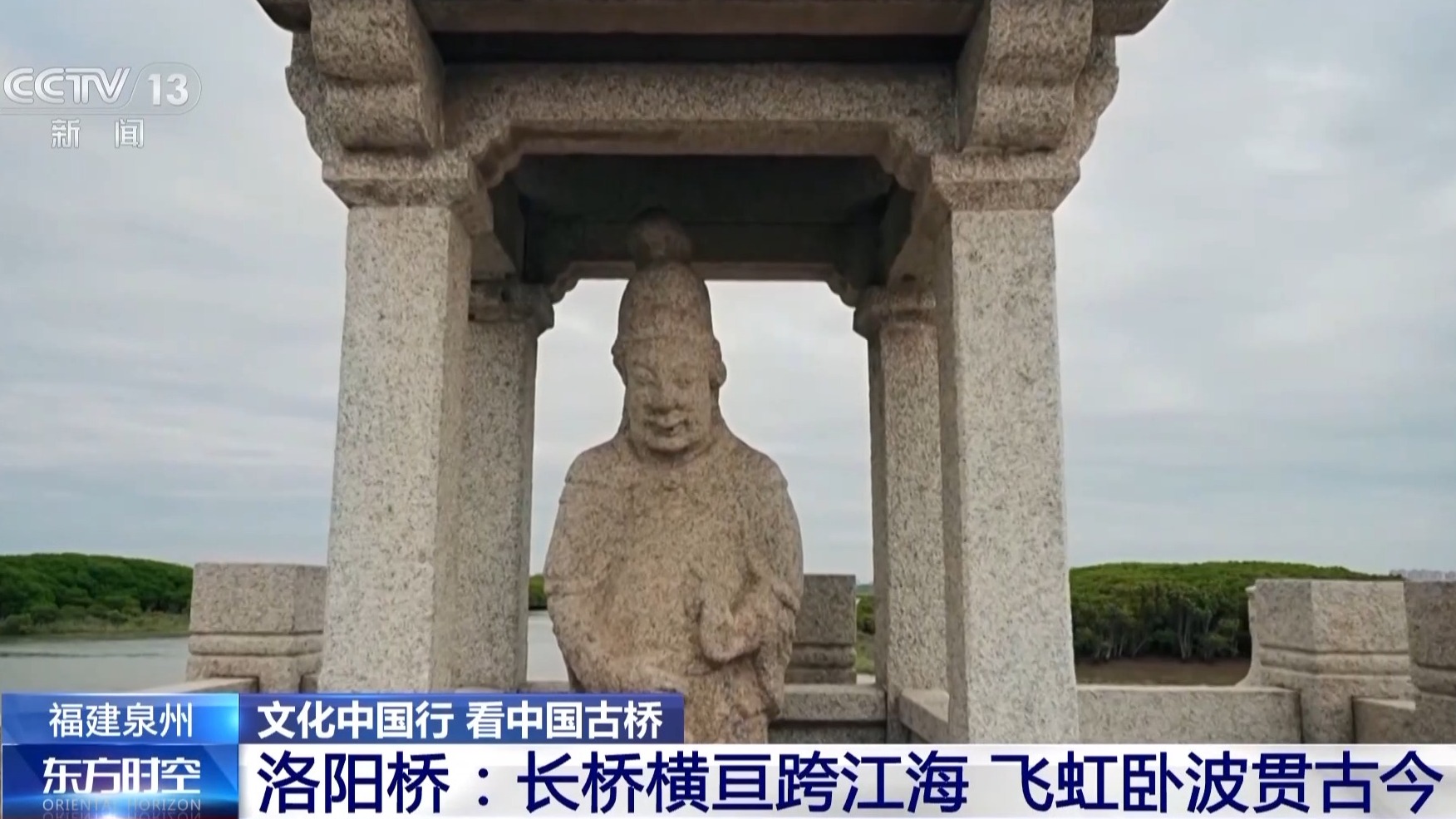 总台记者 赵晟萱:洛阳桥有这样一方摩崖石刻,上面写着“万古安澜”。其实在洛阳桥建成之前,这里是一个渡口,叫“万安渡”,这也是为什么,洛阳桥又被称为“万安桥”。