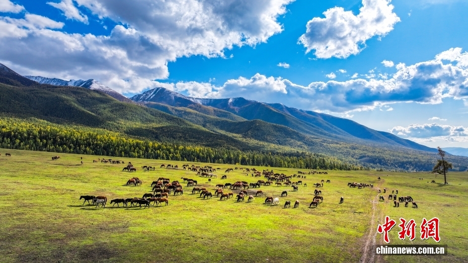 新疆阿勒泰,牛羊遍地,水丰草盛。