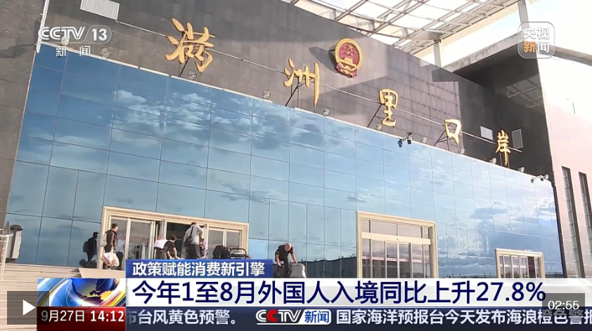 据统计,今年1至8月,外国人入境5126.8万人次,同比上升27.8%。我国服务零售额同比增长5.1%。数字消费、绿色消费、健康消费等新型消费持续壮大,入境消费持续扩大。截至8月底,全国离境退税商店数量突破1万家,前8个月退税商品销售额同比增长97.5%,享受退税人数同比增长2.5倍。