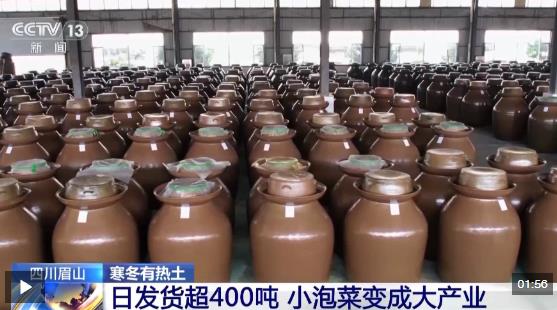 眉山“中国泡菜城”管委会经济发展局局长 胡春福:我们专门从原料、技术和企业三个方面出台了相关的文件和帮扶措施,通过“企业+合作社+农户”模式,带动了12万农户人均年增收1.3万元。目前全市泡菜全产业链产值已经达到220亿元。