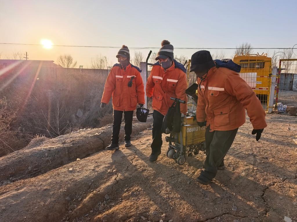 戴上口罩、帽子,队员们把自己裹得严严实实。早晨七点半,队员们合力将重达50余公斤的探伤仪抬上作业车,向着柳村南一场驶去。户外的风迎面扑来,脸被刮得生疼,手指难展,可班长霍智慧却说:“最近天气回暖,今天这天气算好的了。”