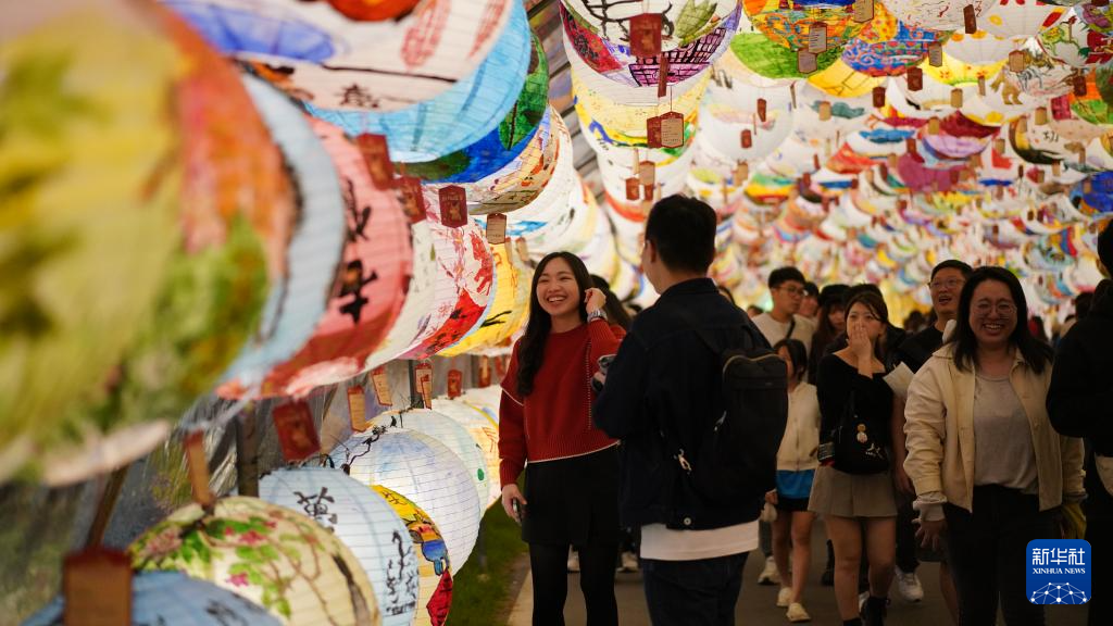 3月1日,台湾民众在2026台北灯节西门町展区游览。新华社记者 姜江 摄