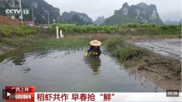 在广西南宁市上林县的一家水产养殖基地,养殖户从田里将小龙虾捕捞上岸后要快速进行分拣、装箱,发往上海、深圳等地。据介绍,从正月初九开始,就有客户前来采购小龙虾,日销量在1500公斤到2000公斤。近年来,当地采用“稻虾共作”的生态种养模式,养出的虾壳亮肉厚、清甜无泥腥味,既满足了市场需求,也让群众实现了在家门口就业。