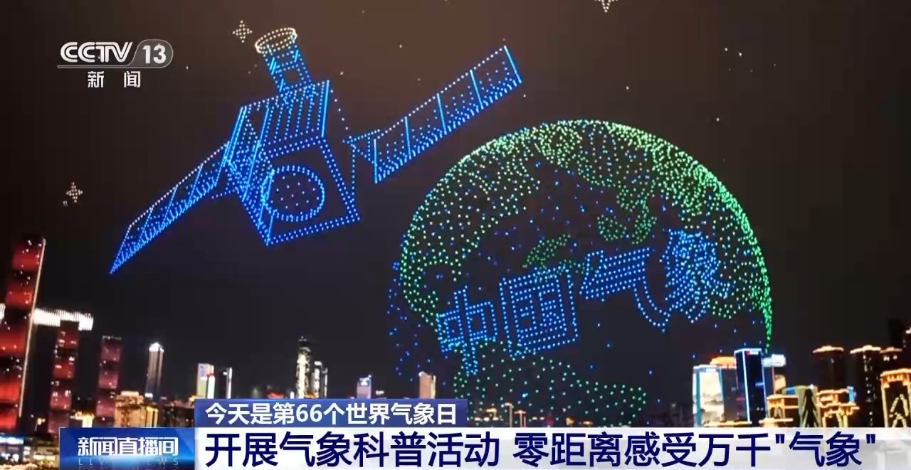 夜幕降临,重庆的夜空被5000架无人机点亮,它们组成的风云气象卫星巡弋云海、俯瞰山河,以科技之光给世界气象日送上一份独特的浪漫。
