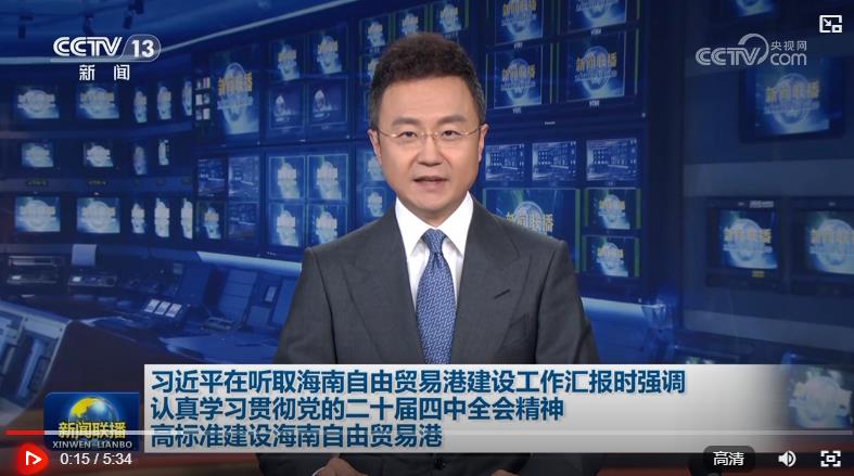 中共中央总书记、国家主席、中央军委主席习近平在听取海南自由贸易港建设工作汇报时强调,建设海南自由贸易港,是党中央着眼新时代全面深化改革开放作出的重大决策。要认真学习贯彻党的二十届四中全会精神,在党中央集中统一领导下,各级各有关方面密切协作、主动作为,通过持续努力,全面实现海南自由贸易港建设目标。