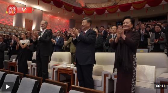 11月12日晚,国家主席习近平和夫人彭丽媛在北京国家大剧院同西班牙国王费利佩六世夫妇一同观看西班牙皇家剧院音乐会。