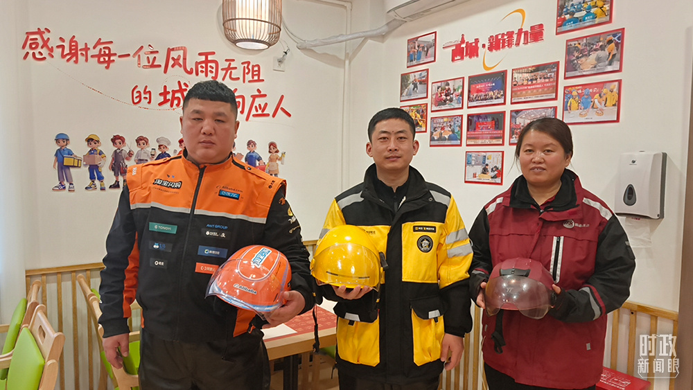 新街口父母食堂里休息的快递工作人员。(总台央视记者钟信伟拍摄)