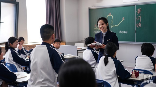 △北京四中雄安校区初一(2)班的语文课堂。(总台记者李晋拍摄)