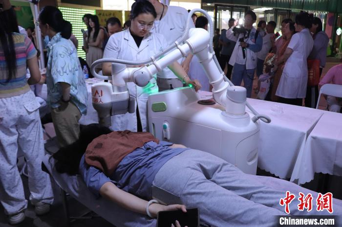 市民正在体验“热敏灸机器人”。 熊锦阳 摄