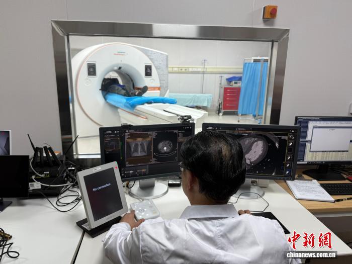 图为王罡正在用光子计数CT为患者做胸部平扫。 陆希成 摄