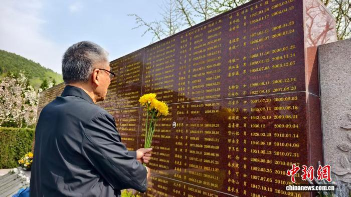 3月28日,吴晓建向遗体捐献纪念墙敬献鲜花。周艺伟 摄