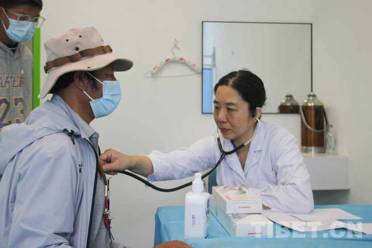 图为义诊专家在拉萨市城关区人民医院为患者听诊 摄影:旦曲