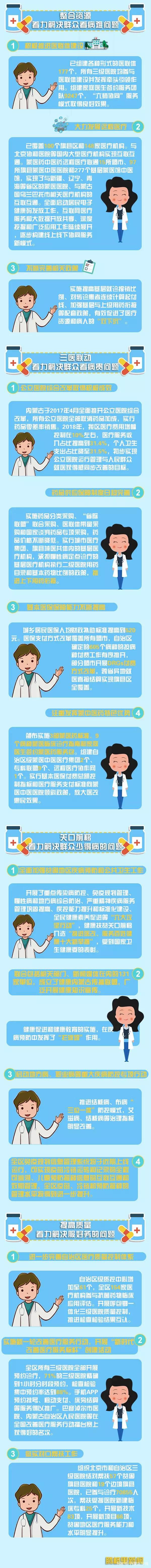 今年是新医改实施10周年,新医改实施以来,自治区党委、政府层面制定出台医改政策53件,各部门出台配套文件280余个,具有立柱架梁性质的制度体系日趋完备。