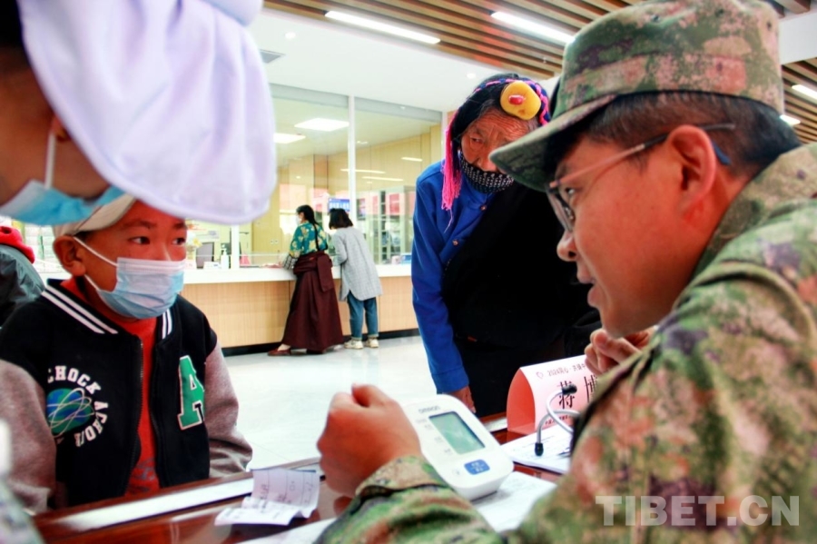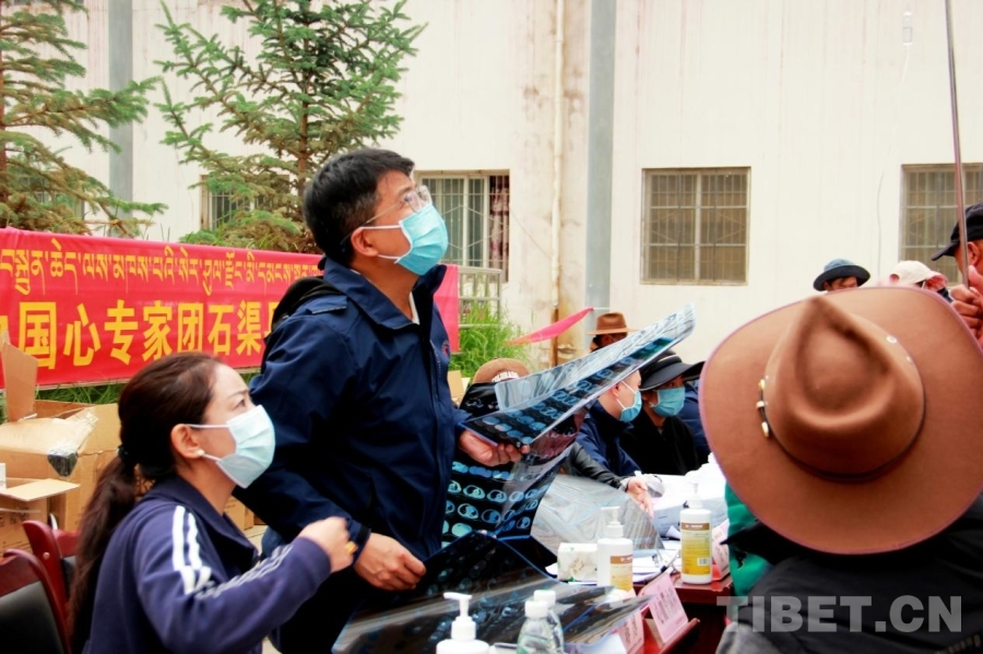 图为中国人民解放军总医院第一医学中心心血管内科副主任医师蒋博在四川省甘孜州石渠县洛须镇石渠县人民医院第二医疗区义诊 摄影:刘莉