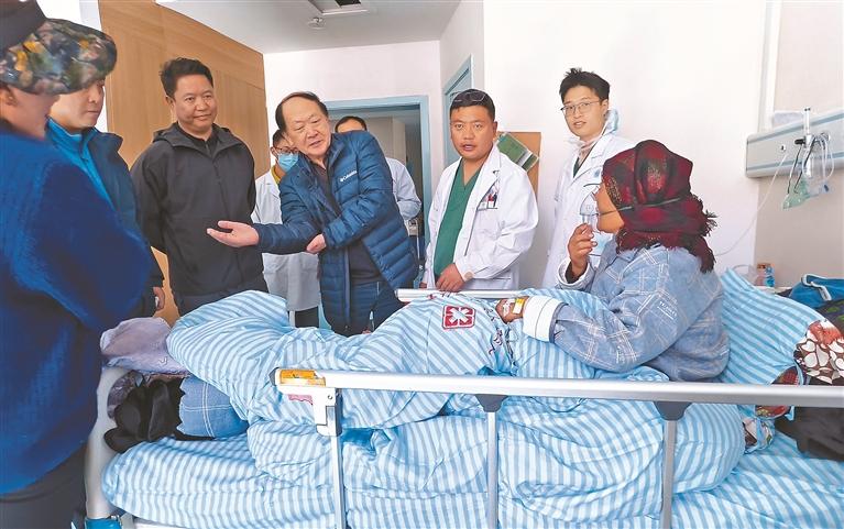 图为南京市第一医院关节外科专家团队了解患者术后康复情况。记者 格桑伦珠 摄