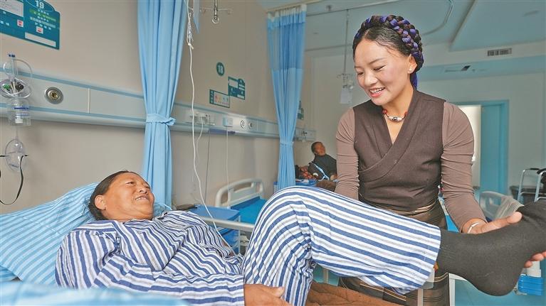 图为患者在进行术后康复训练。记者 格桑伦珠 摄