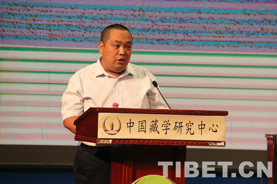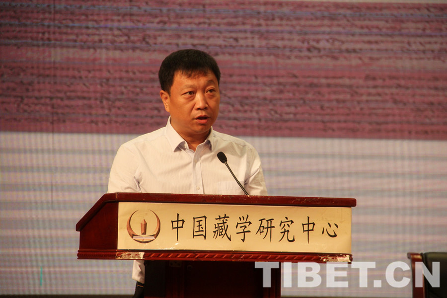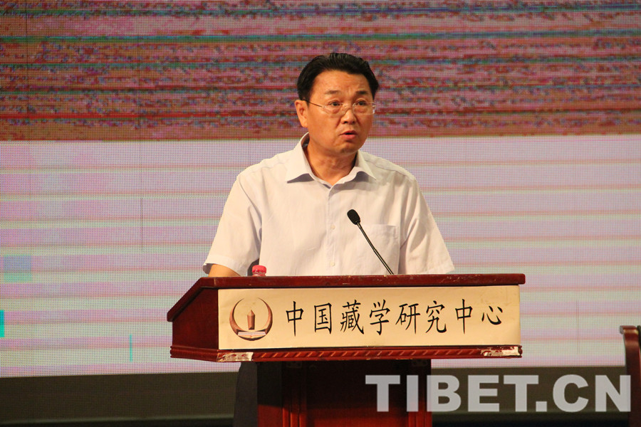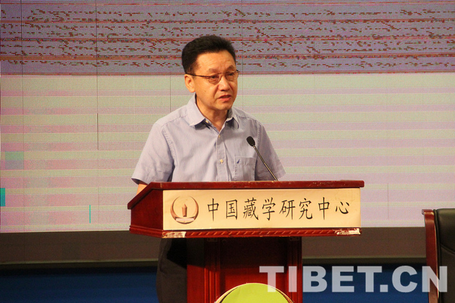 图为中国藏学研究中心总干事郑堆致辞。摄影:李元梅