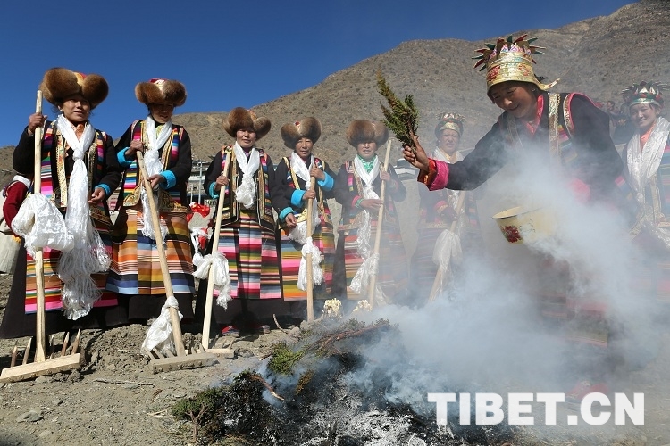 图为:3月16日,桑烟缭绕的琼结县琼结镇雪康村春耕仪式现场。