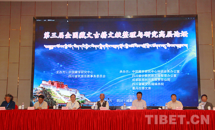 中国西藏网讯 9月6日,第三届全国藏文古籍文献整理与研究高层论坛在四川省成都市举行。此次论坛由中国藏学研究中心、四川省民族宗教事务委员会主办,中国藏学研究中心科研业务办公室、四川省少数民族古籍整理办公室、成都联图科技有限责任公司、喜马拉雅文库、四川省藏文古籍搜集保护编务院五家联合承办。来自西藏和涉藏工作重点省以及其他地区的数十家科研机构、古籍整理单位、图书馆、高等院校及相关部门的200余名专家学者济济一堂,就藏文古籍整理与研究进行深入探讨。