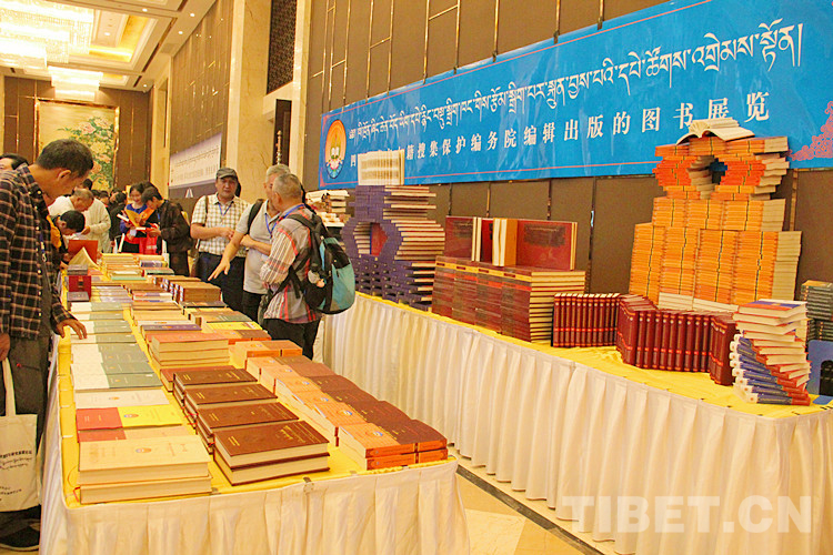 开幕式后,代表们饶有兴致地参观了现场设置的“四川藏文古籍工作成果展”,包括以喜马拉雅文库整理的《伯东班钦全集》95卷、《小五明文献分类集成》209卷、《<格萨尔王传>大全》300卷,四川省藏文古籍搜集保护编务院整理的《藏区民间所藏藏文珍稀文献丛刊 》50卷、《民族医药文献整理丛书》14卷、《百部格萨尔古籍丛书》118卷等为代表的重量级藏文古籍整理作品,以及联图科技公司展示的少数民族古籍数字化设备、技术、古籍数字化方面取得的成果。近千卷作品,串连呈现了四川省藏文古籍整理工作的脉络。