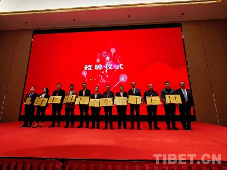 图为西藏自治区酒业协会会长向副会长单位跟秘书长授牌并合影 摄影:次旦拉姆
