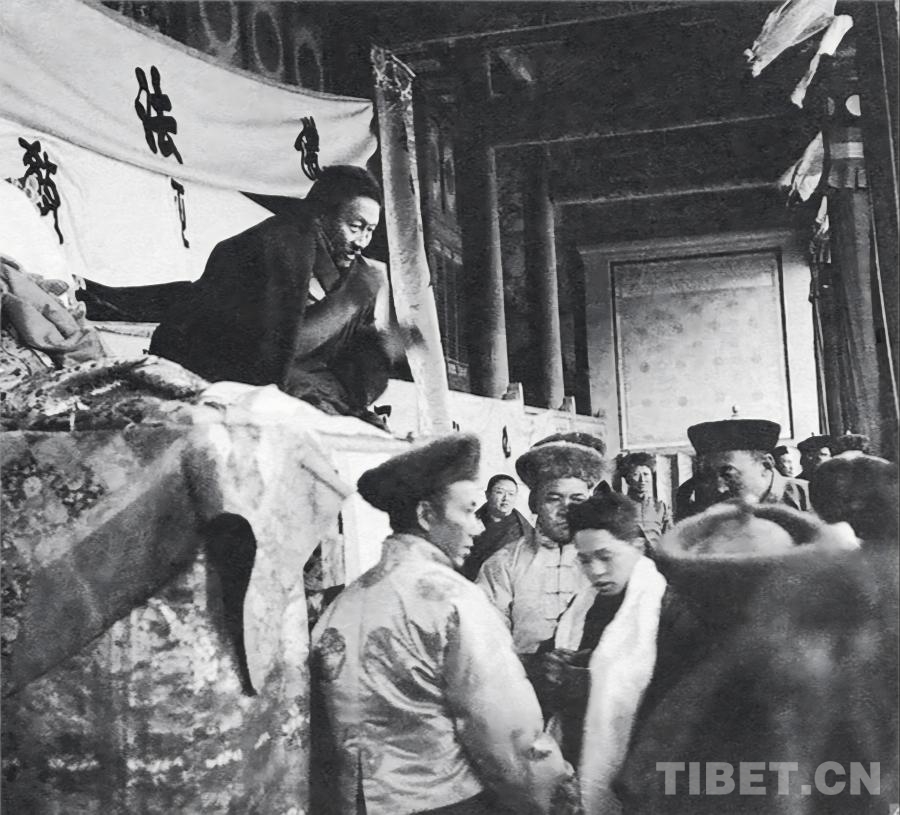 图为九世班禅在玉树接受僧俗信众朝拜(1937年)