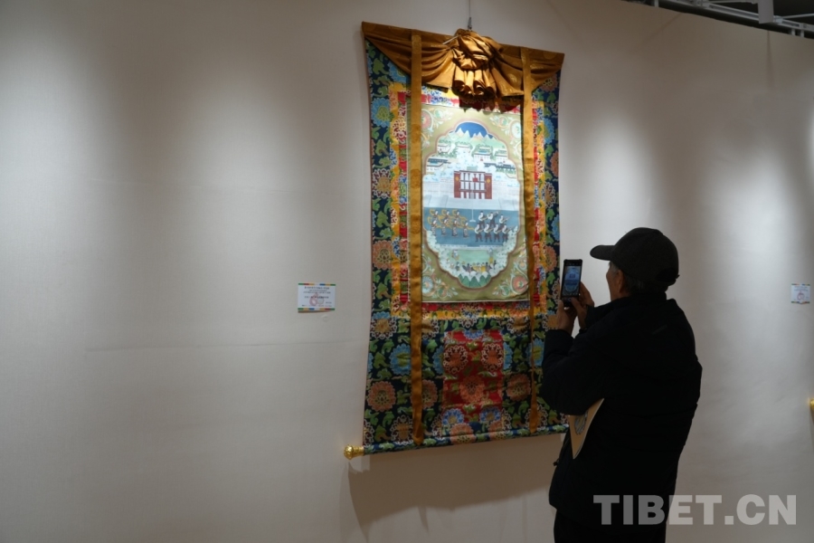 图为展出的唐卡作品 摄影:莫干措