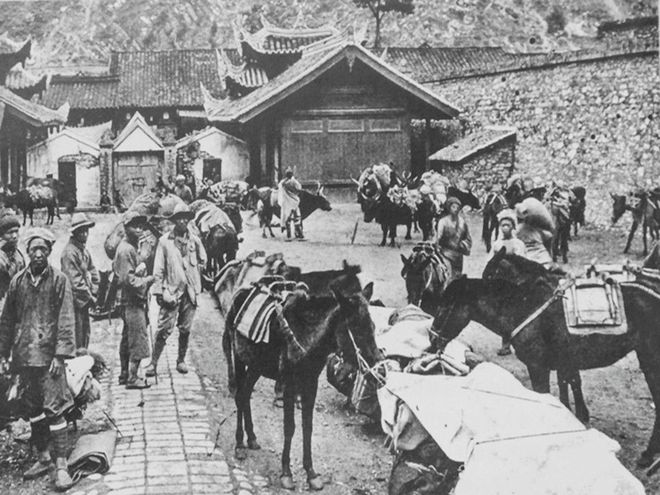 图为炉城四十八锅庄图景,图中地点为1929年康定北门市场 来源:甘孜日报