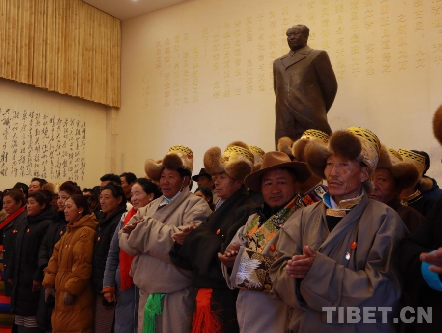 图为西藏各族各界群众纪念毛泽东同志诞辰132周年