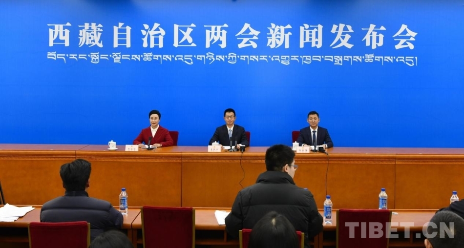 图为西藏自治区两会新闻发布会现场