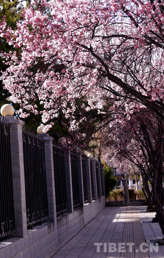 中国西藏网讯 阳春三月,西藏拉萨万物复苏,街头巷尾春意渐浓。3月17日,记者漫步在拉萨市城关区军民路看到,道路两旁盛开的春花为这条街道披上了粉色的春装,构成了一幅别具诗意的高原春景图。