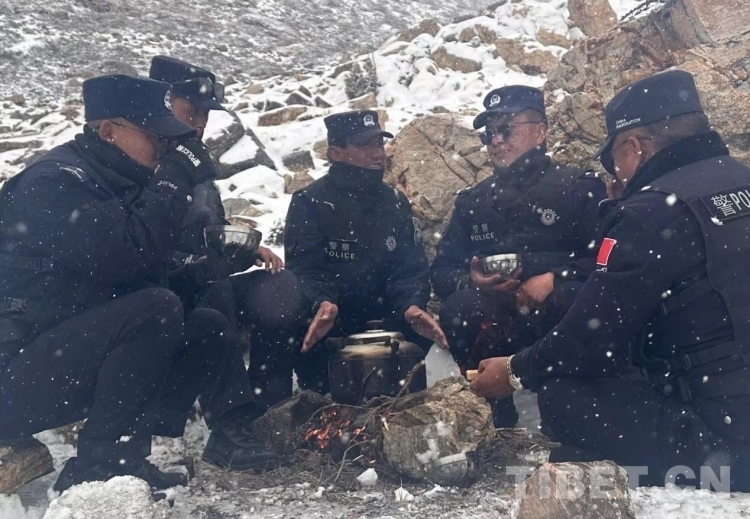 图为民警在巡逻踏查途中生火煮茶 摄影:格热