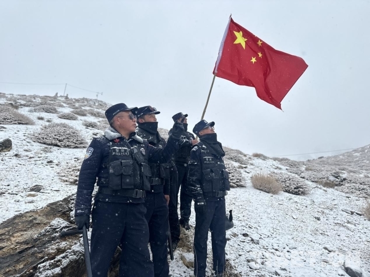 中国西藏网讯 近日,西藏普兰出入境边防检查站斜尔瓦执勤点移民管理警察冒着风雪在中尼7号至10号界桩旁开展边境巡逻踏查。据了解,斜尔瓦执勤点坐落于普兰县科迦村斜尔瓦组一公里处的半山腰上,平均海拔4000米。该执勤点移民管理警察年复一年、日复一日地坚守在这里,严防口岸一线走私、偷渡、非法出入境等违法犯罪活动发生。(中国西藏网 通讯员/格热 记者/次旦拉姆)