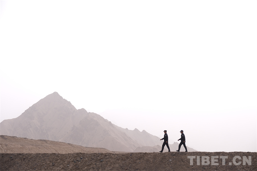 图为巍巍昆仑,莽莽戈壁,天路卫士在巡线路上