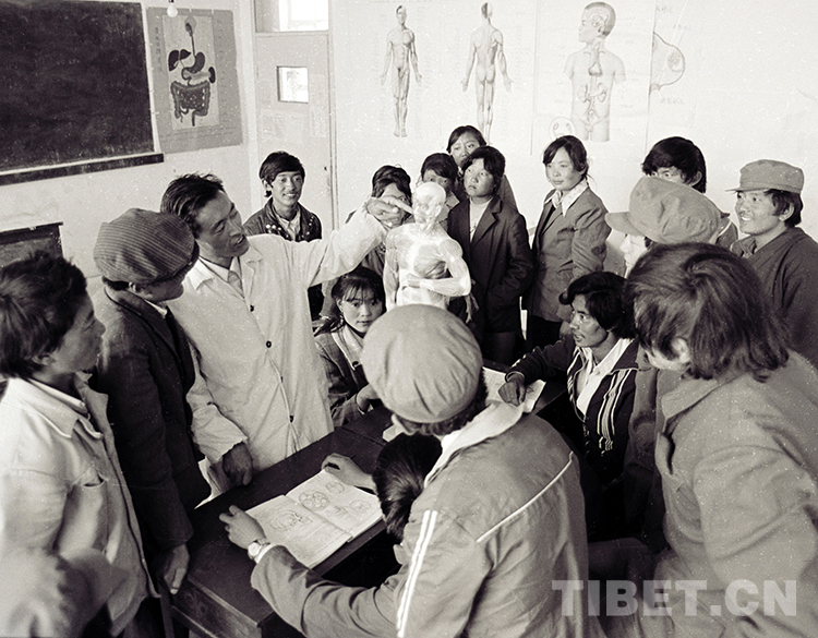 这是西藏那曲地区(现那曲市)中专卫生班老师在给学生上课(唐召明1985年摄)
