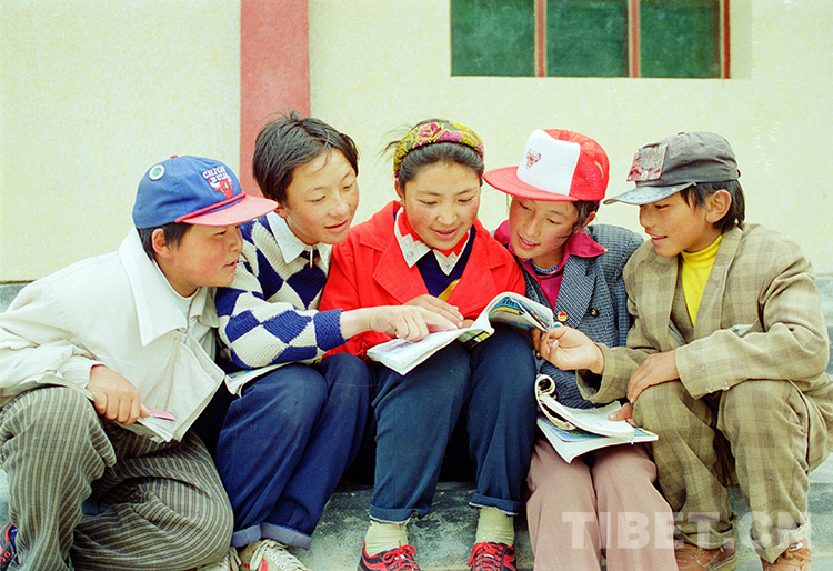 这是嘉黎县中学学生在课余时间相互学习交流。该校由宁夏回族自治区和新疆维吾尔自治区共同援建(唐召明1997年摄)