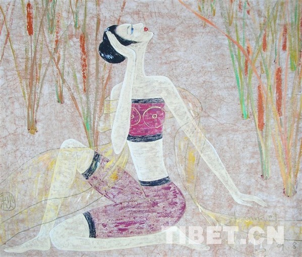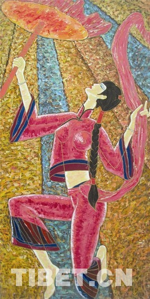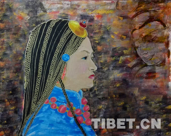 《青海女孩》 材料:皮纸、丙烯 60*40 朱翠平画
