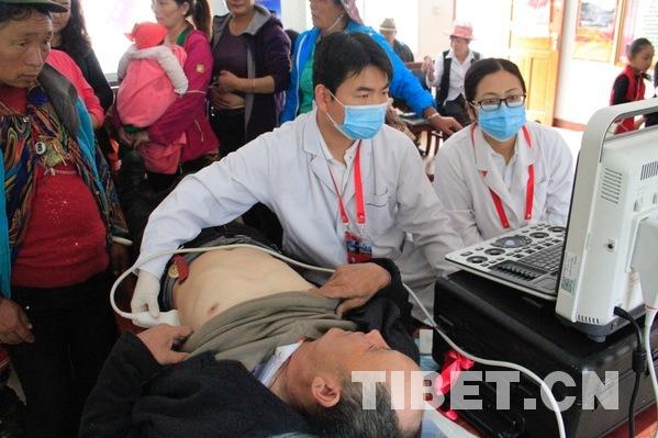 图为医生在西藏逐一为村民筛查包虫病 摄影:陈冰旭