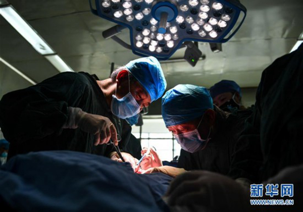 图为自治区第二人民医院蒋宗华主任正在为包虫病患者手术。