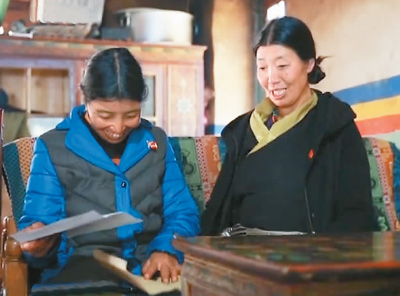 卓嘎、央宗姐妹十分激动地翻看习近平总书记的回信。(央视截图)
