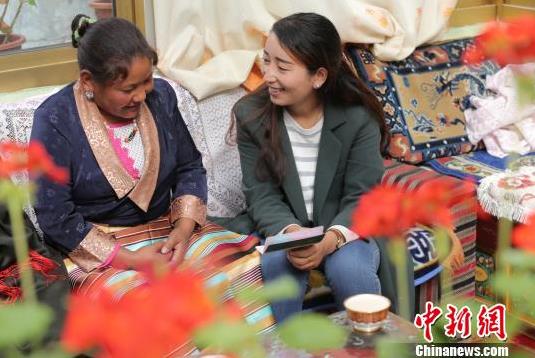 图为日喀则亚东县下亚东乡工作人员米玛卓玛到仁青岗村边巴次仁家讲解扶贫资金卡的好处。资料图图片来源:中新网