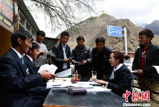 图为金融机构工作人员入村为建档立卡贫困户办理精准扶贫贷款业务。资料图中国人民银行拉萨中心支行供图