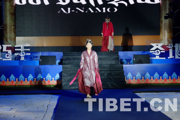 AJNAMO品牌服装秀是此次巡展活动的首场藏装T台秀。为参加此次巡展,知名藏族歌手、登上国际时装周的少数民族设计师阿佳娜姆,带来了自己亲手设计的40多套藏族服饰,以高原红、哈达白与牦牛黑来诠释藏族服饰。