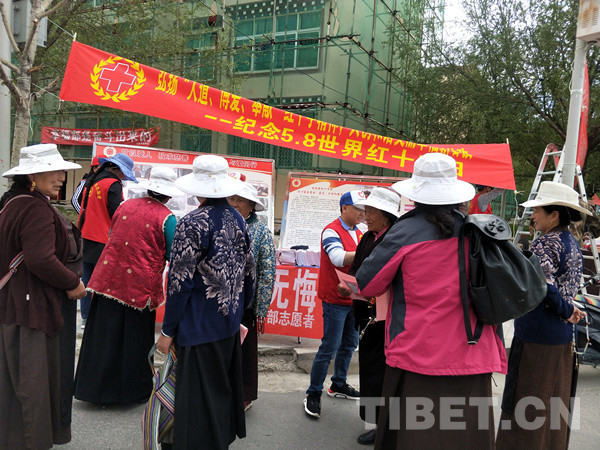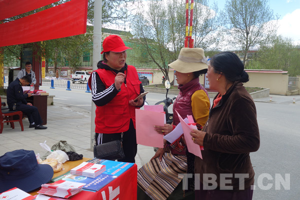 中国西藏网讯 为纪念第71个“世界红十字日”,进一步弘扬“人道、博爱、奉献”的红十字精神, 5月8日,四川省甘孜藏族自治州甘孜县红十字会在县机场大道十字路口开展以“弘扬‘人道、博爱、奉献’红十字精神,共创和谐美丽幸福新甘孜”为主题的宣传活动。