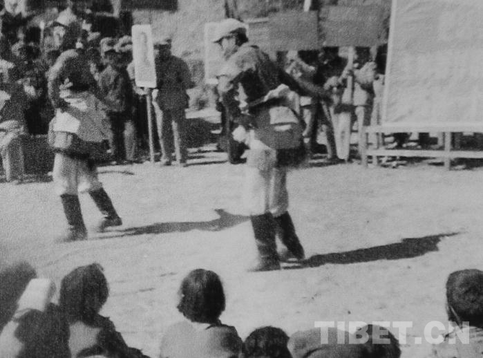 图为西藏文工团老照片:傅联合、王勉之表演踢踏舞