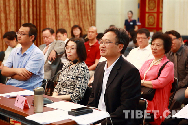 相关与会学者在捐赠仪式上踊跃发言,图为四川师范大学历史文化学院院长王川发表感言。